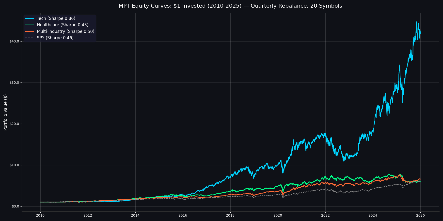That said, even with these caveats, the directional finding is clear: disciplined, math-driven portfolio construction meaningfully outperforms naive diversification on a risk-adjusted basis. You don't need to be a hedge fund to use the same math hedge funds use.