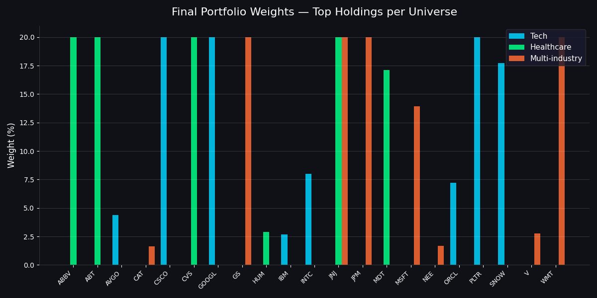 The final optimized weights for the Tech universe tell a counterintuitive story: